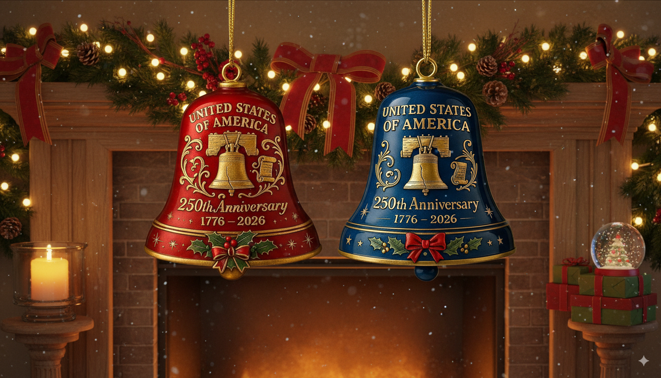 Cet ornement de cloche du 250e anniversaire des États-Unis ajoute une touche patriotique à tout cadre.Que ce soit exposé sur votre sapin de Noël ou comme décoration intérieure tout au long de l'année, il met en avant le 250e anniversaire de l'Amérique avec des détails intemporels
